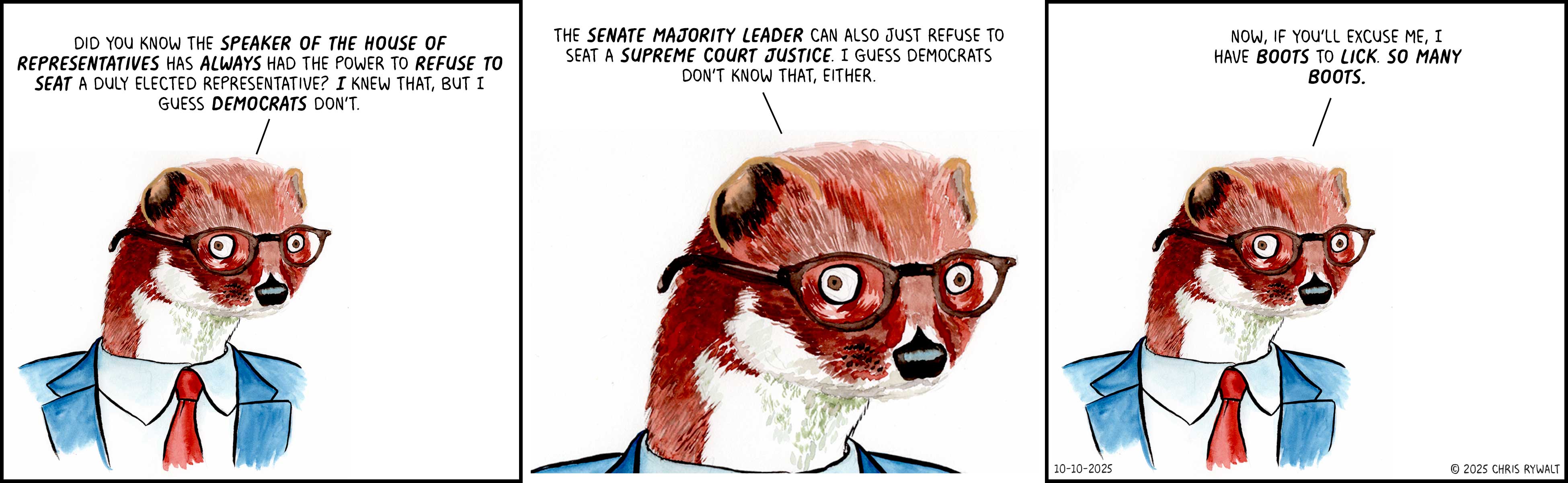 I find it darkly amusing how, when the Democrats are in power -- remember when we elected Barack Obama and the Dems controlled both houses of Congress? -- they can't seem to get anything done and even find themselves tripping over Democratic holdouts like Joe Manchin or John Fetterman, but when Republicans are in power suddenly the government runs entirely on their say-so without even a pretense of legal or Constitutional rationale. Joe Biden wants to forgive student loans and the Supreme Court says that's presidential overreach, but what's worse is, Biden and the Democrats say, "Uh, okay," and go back to their corner. Trump decides he wants to set his enemies on fire on the National Mall and SCOTUS is, like, sure, says right here in the Constitution you can do that, and the Republicans all line up with matches and kerosene.
