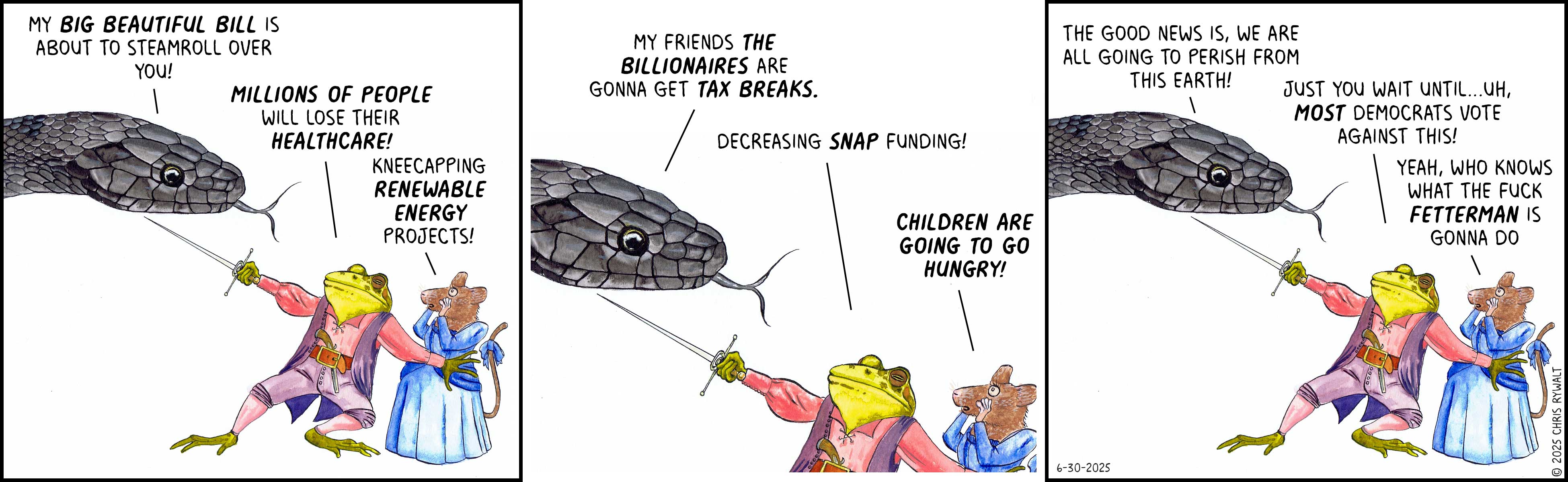 What sad aide has been chained in the basement of the Capitol for decades while forced to come up with the most ironic names for bills in Congress? The Big Beautiful Bill is anything but unless you're already filthy rich. The Republicans have even bypassed millionaires and gone straight into being the party of billionaires.