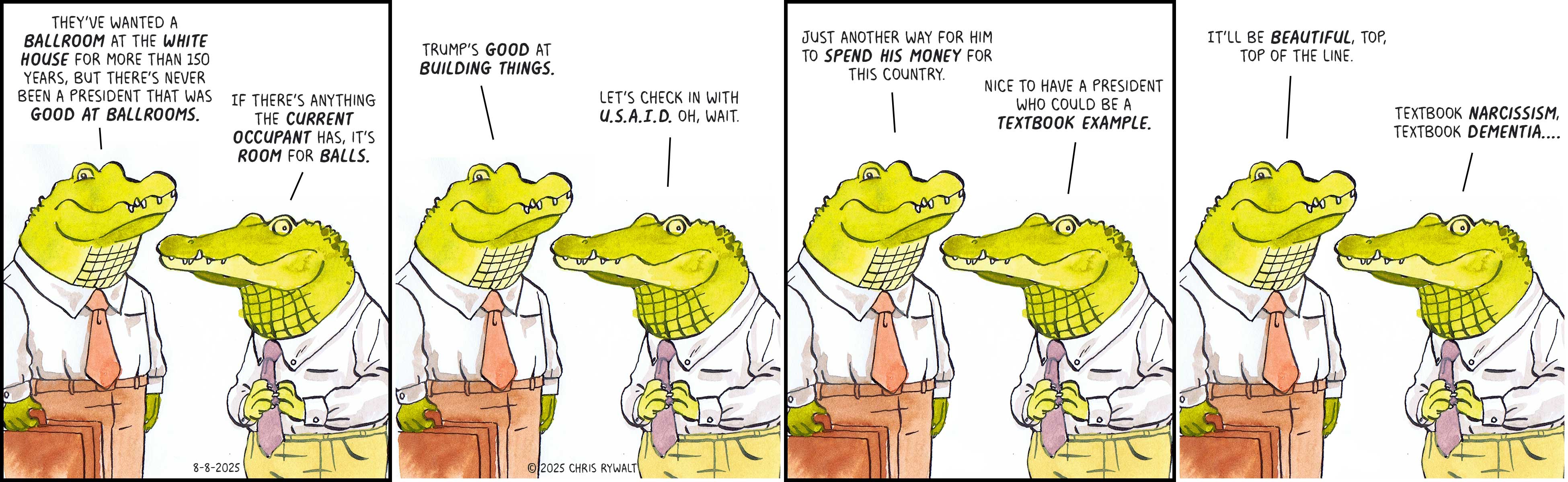 Donald Trump is wandering around the White House roof, a perfectly normal thing people with dementia do when they get loose from their guardians, and is apparently looking to wreck as much of the White House as possible before he croaks. Yay for everyone.