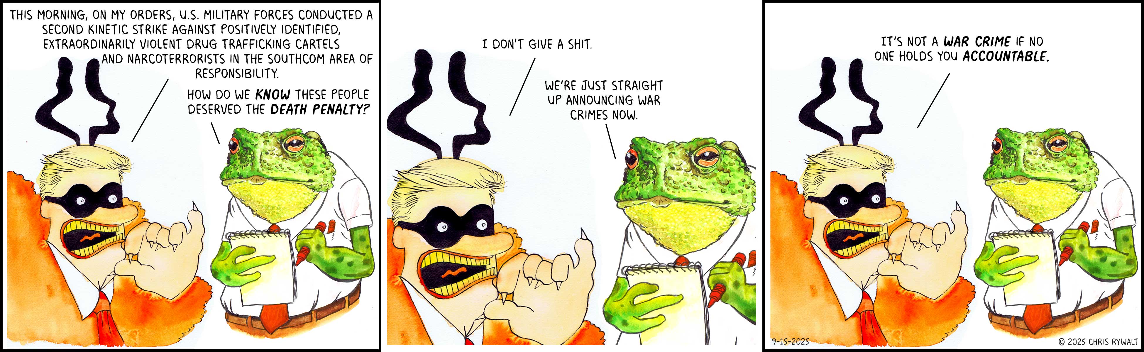 I guess now we know it wasn't a one-time thing, Trump is just going to keep approving (and the complicit servicepeople are going to keep carrying out) illegal orders to murder people in international waters. Does everyone involved here realize he's going to keep doing it until someone stands up to him? I mean, yeah, he'll probably keep doing it after that, too, but until someone tries to stop it, it's for sure just going to continue.